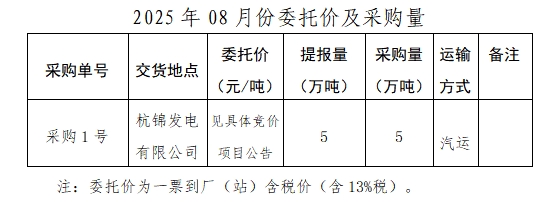 內蒙古能源集團有限公司計劃對所屬杭錦發電有限公司2025年8月市場煤采購進行電子專場交易,交易信息現對外公開發布,凡符合條件的交易商均可參加。