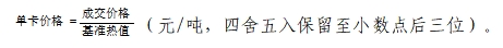 (1)如Qnet,ar>基準(zhǔn)值,以基準(zhǔn)值為基礎(chǔ),每升高1千卡/千克,結(jié)算價(jià)格調(diào)增單卡價(jià)格1.0倍。