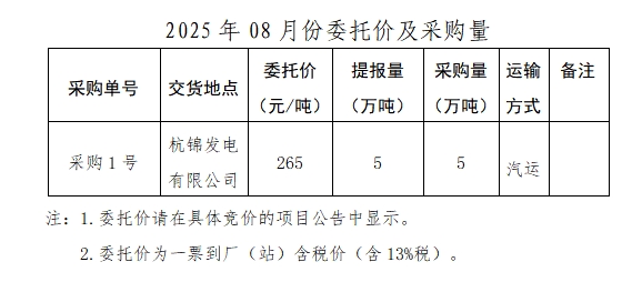 內(nèi)蒙古能源集團(tuán)有限公司計劃對所屬杭錦發(fā)電有限公司2025年8月市場煤采購進(jìn)行電子專場交易,交易信息現(xiàn)對外公開發(fā)布,凡符合條件的交易商均可參加。